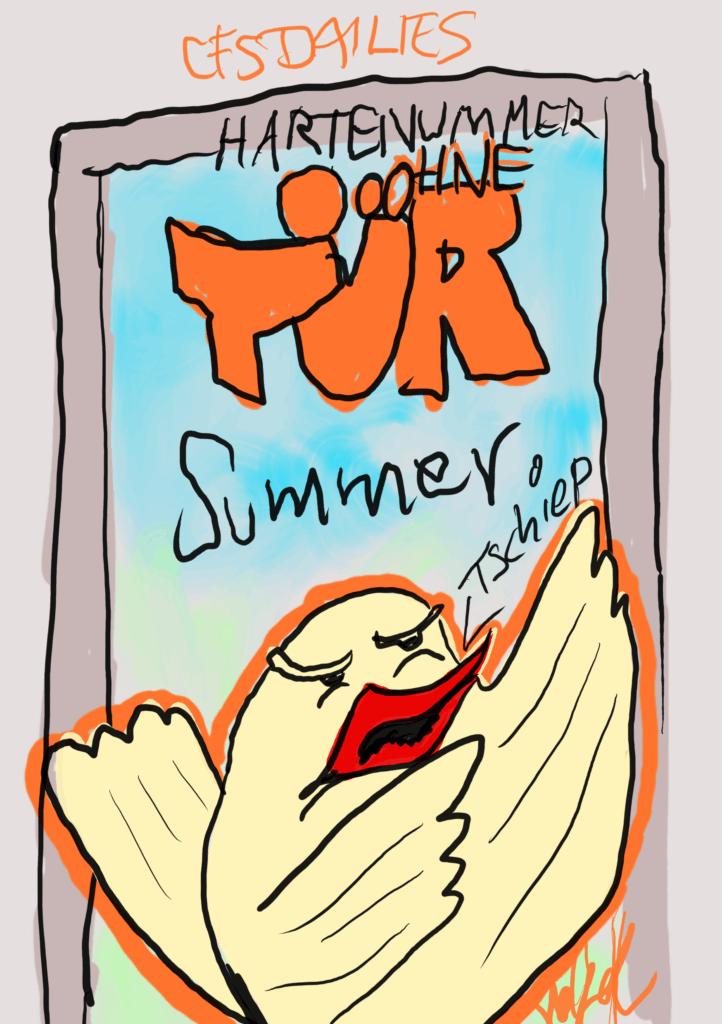 endlich geht mein Türöffner wieder. Ich weiß zwar noch nicht wie zuverlässig, aber wenn man CFS hat und im fünften Stock ohne Aufzug wohnt ist der Türsummer echt lebenswichtig. Sonst kann ein jede Bestellung in den Crash schicken, aber die Zeit ist erstmal wieder vorbei, yay